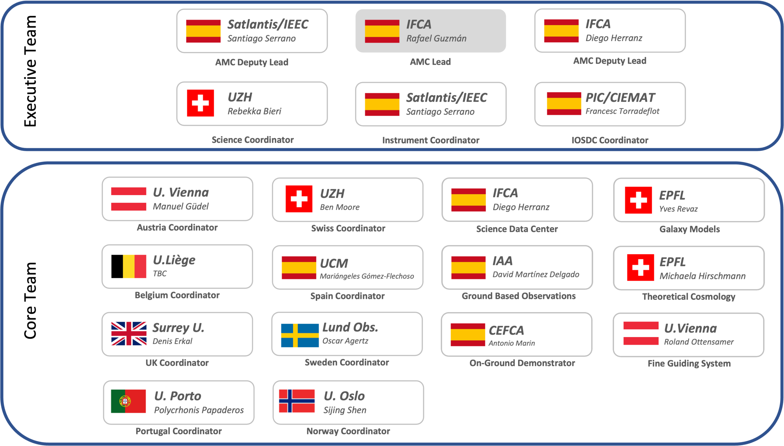 The ARRAKIHS Mission Consortium (AMC) is the group of scientists and engineers from research institutes and companies representing different European countries (Spain, Austria, Belgium, Sweden, Switzerland, Norway, Portugal and United Kingdom).